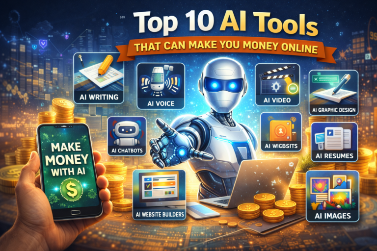 Top 10 AI Tools That Can Make You Money Online in 2026 (Beginner Friendly Guide) Introduction The Top 10 AI Tools That Can Make You Money Online are changing the way people earn income in the digital world. Artificial intelligence is no longer just for big companies. Today, freelancers, entrepreneurs, and creators in the United…